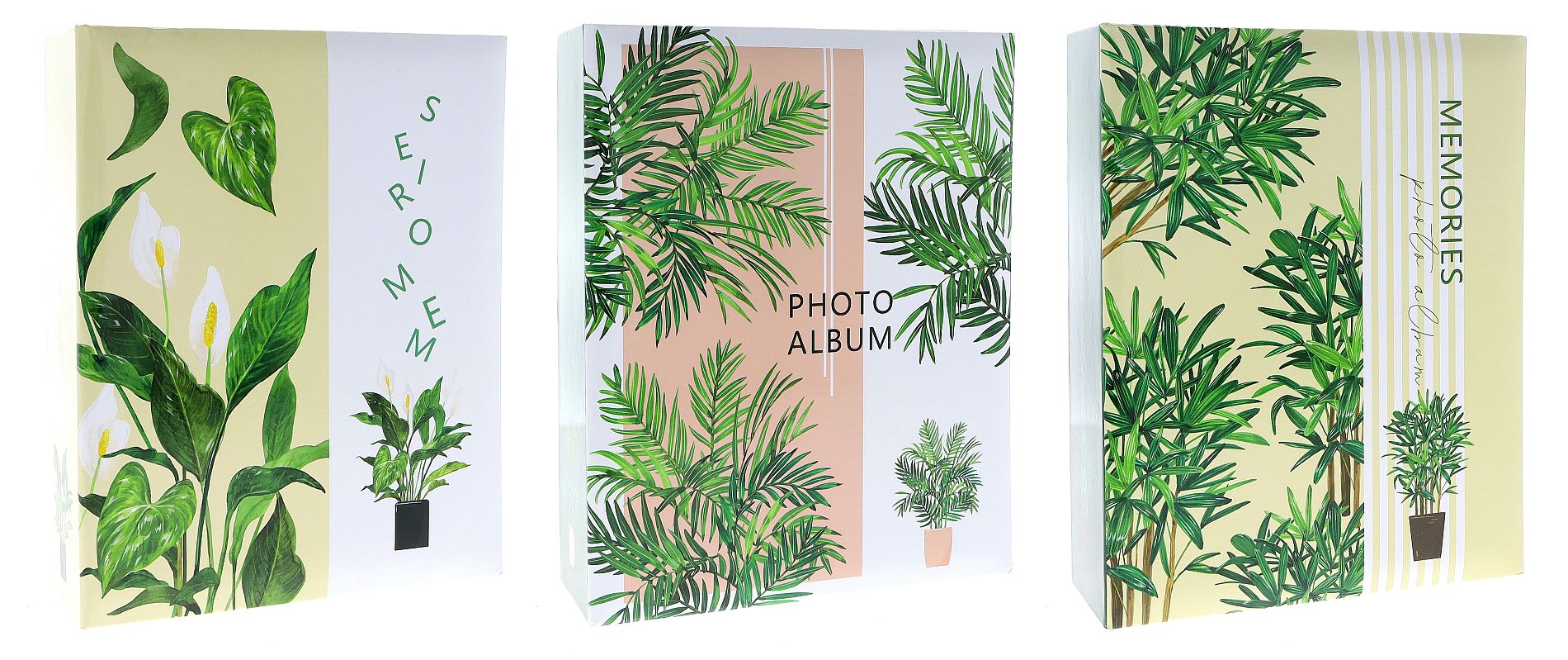 Twarda oprawa albumu została wykonana z wysokiej jakości papieru introligatorskiego z matowym wykończeniem. Na okładce znajdują się grafiki przedstawiające różne gatunki roślin doniczkowych, takie jak palmy, skrzydłokwiaty czy bambusy. Kolorystyka opiera się na odcieniach zieleni, bieli, beżu i delikatnego różu, co nadaje albumowi świeży i nowoczesny wygląd. Album występuje w kilku wzorach graficznych, które wysyłane są losowo.