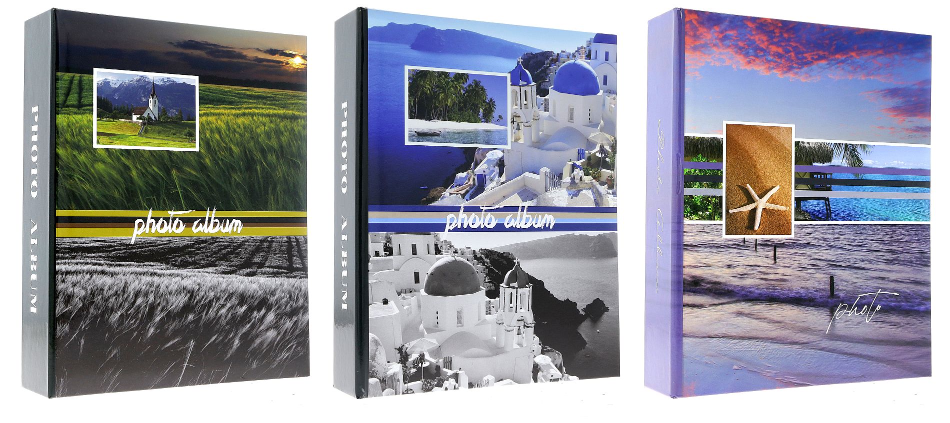 Album posiada twardą, solidną okładkę pokrytą laminowanym papierem, na którym nadrukowano wysokiej jakości kolaże fotograficzne. Do wyboru są różne, inspirujące wzory nawiązujące do letnich podróży – od malowniczych górskich krajobrazów, przez błękit greckich wysp, aż po egzotyczne plaże. Dodatkowym atutem jest wycięte na froncie okienko, które pozwala na umieszczenie własnego zdjęcia, nadając albumowi osobisty i unikalny charakter.
