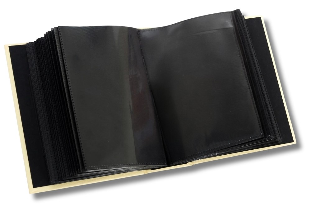 Wewnątrz albumu znajdują się przezroczyste kieszenie, które pomieszczą 100 zdjęć w najpopularniejszym formacie 10x15 cm. Wsuwany system montażu fotografii jest niezwykle prosty i szybki, pozwalając na łatwą organizację i przeglądanie kolekcji bez ryzyka uszkodzenia odbitek. Każda strona mieści jedno zdjęcie w układzie poziomym.