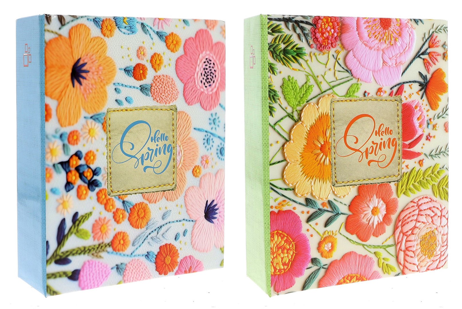 Odkryj urok albumu z serii NEWSPRING, którego okładka przyciąga wzrok unikalnym wzorem imitującym ręczny haft. Tłoczona faktura sprawia, że kolorowe, wiosenne kwiaty wydają się niemal trójwymiarowe. To idealne miejsce na Twoje fotografie w formacie 10x15 cm.