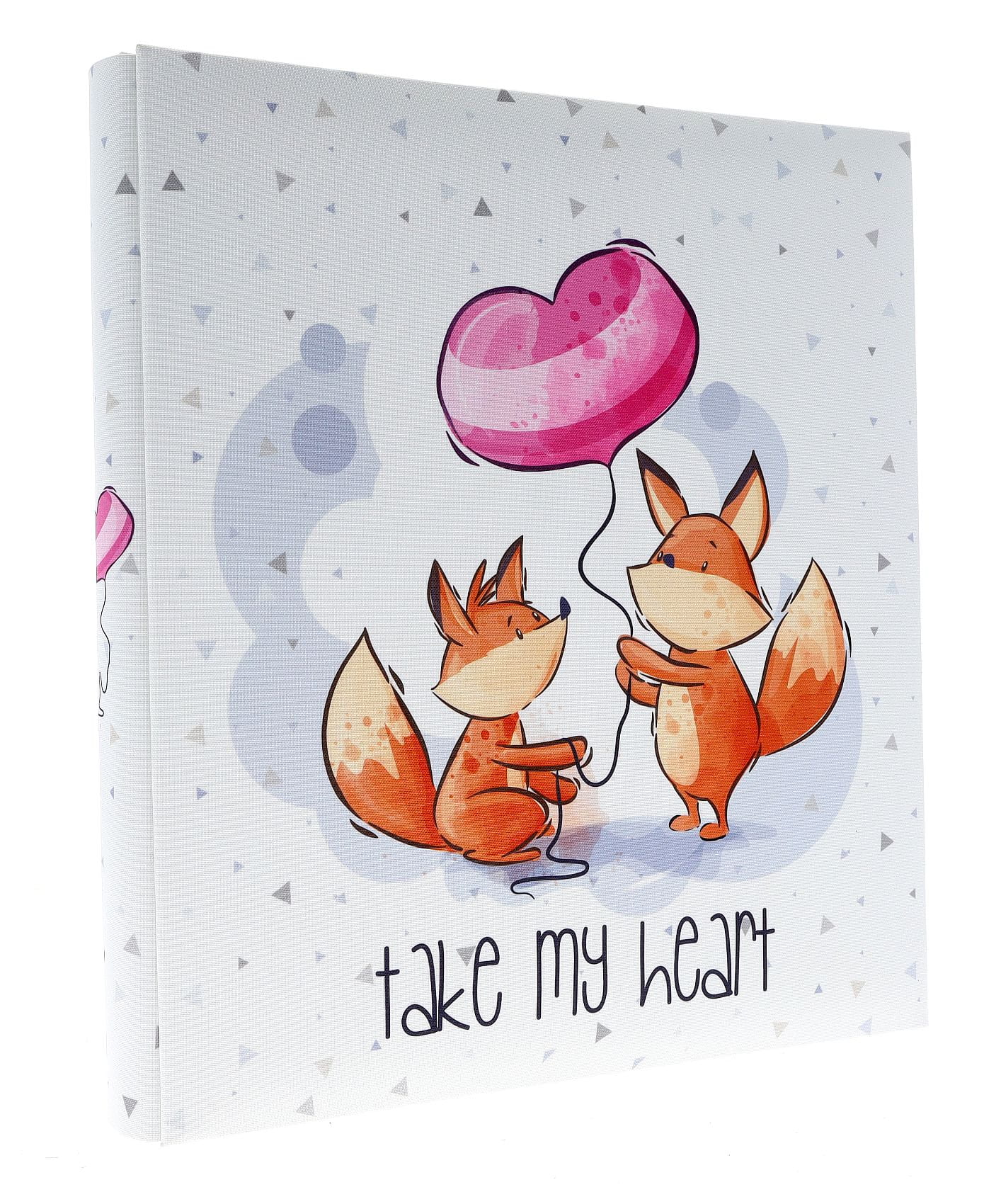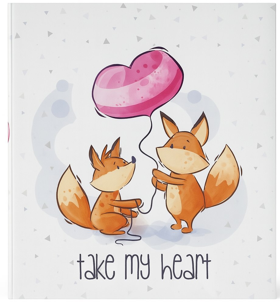 Okładka albumu została wykonana z gładkiej, matowej skóry syntetycznej, która jest trwała i łatwa w czyszczeniu. Uroczy nadruk w stylu akwareli przedstawia dwa lisy na tle subtelnych, geometrycznych wzorów. Pod grafiką znajduje się napis 'take my heart', dodający całości romantycznego charakteru.