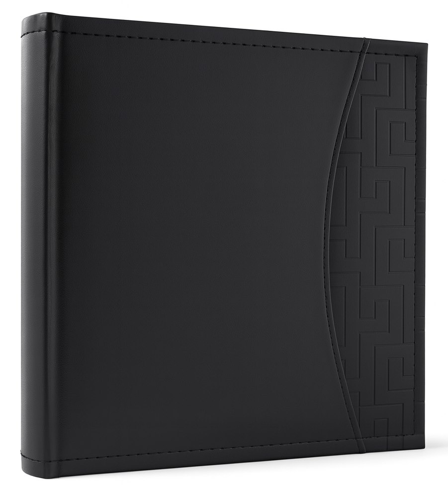 Album kieszeniowy z kolekcji ART43 marki GEDEON to połączenie nowoczesnego designu z praktycznym rozwiązaniem do przechowywania zdjęć. Jego czarna, matowa okładka wykonana z gładkiej w dotyku ekoskóry prezentuje się niezwykle stylowo. Charakteru dodaje jej boczny panel z precyzyjnie tłoczonym, geometrycznym wzorem, który przyciąga wzrok i wyróżnia album na tle innych.