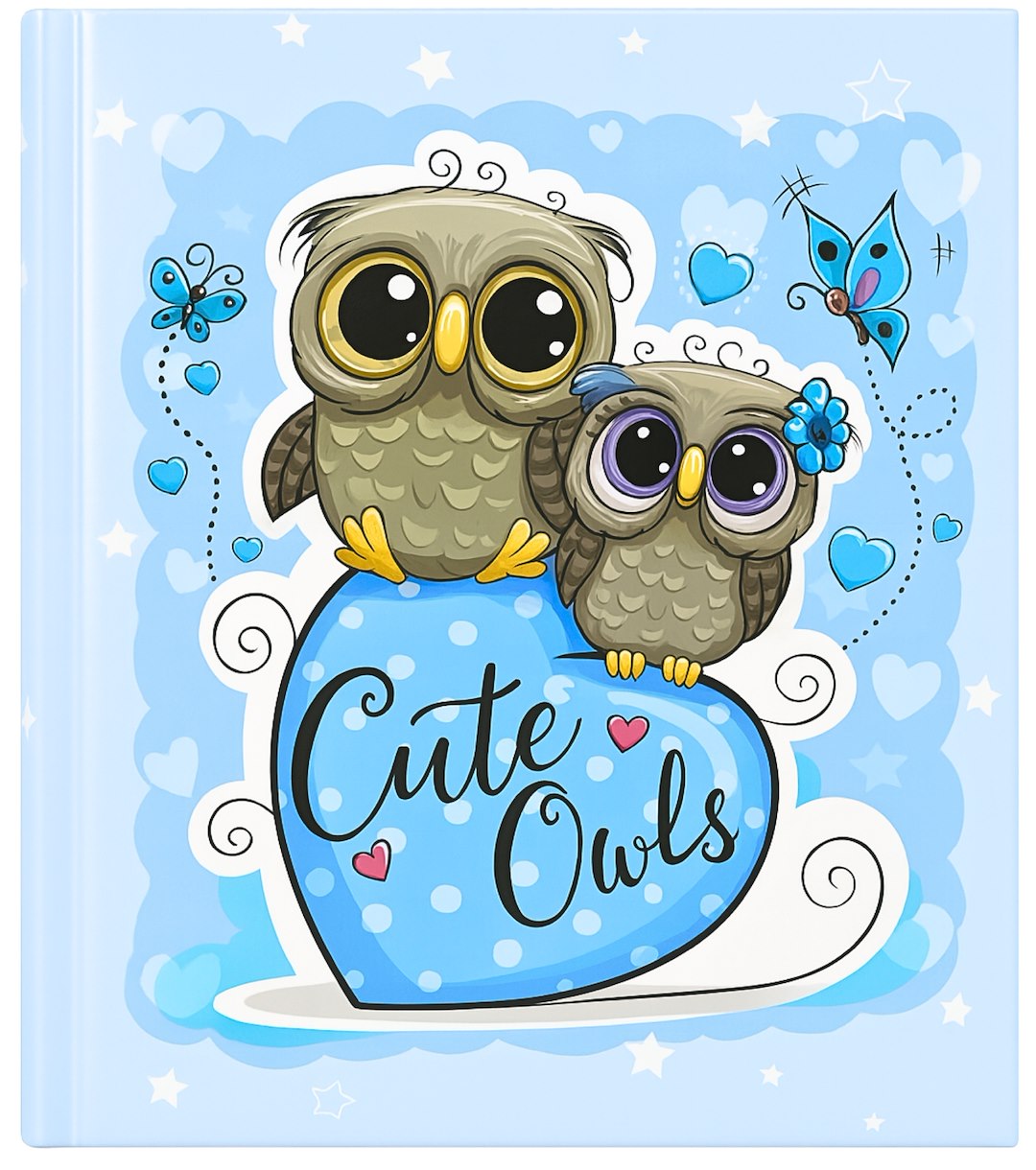 Zachowaj najcenniejsze chwile z pierwszych lat życia Twojego dziecka w tym uroczym albumie kieszeniowym marki Gedeon. Twarda, laminowana okładka w pastelowym, błękitnym kolorze jest ozdobiona wesołą grafiką dwóch sówek siedzących na sercu z napisem "Cute Owls". Tło zdobią delikatne, białe gwiazdki i serduszka, nadając całości bajkowego charakteru.