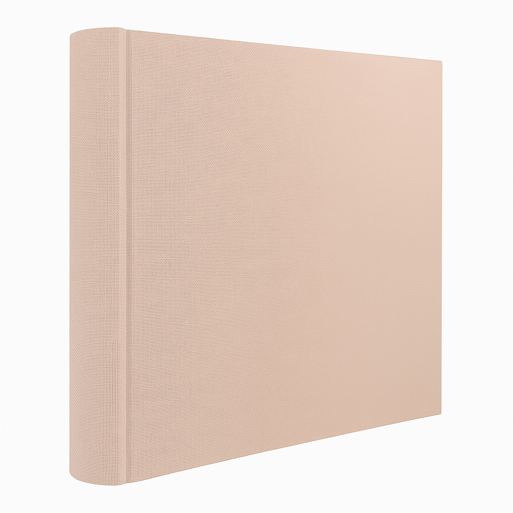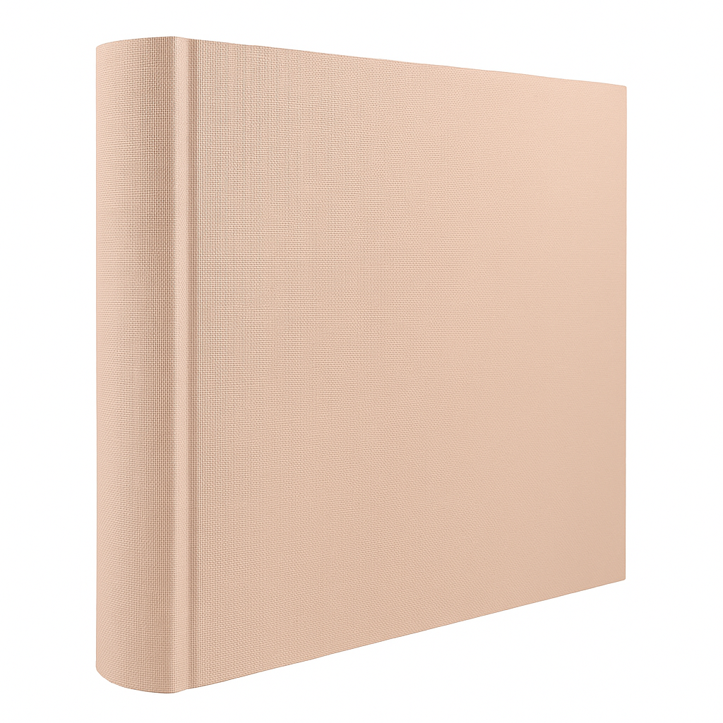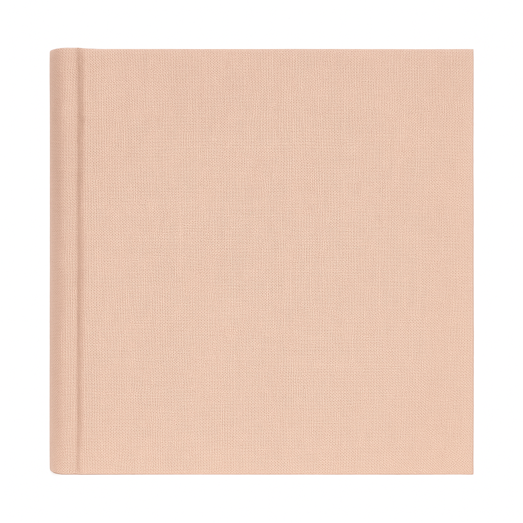 Okładka tego albumu to hołd dla prostoty i naturalnych materiałów. Wykonana z materiału tekstylnego w kolorze pudrowego różu, wiernie oddaje strukturę płótna lnianego. Delikatny, regularny splot jest wyczuwalny pod palcami i dodaje albumowi szlachetnego charakteru. Gładka powierzchnia bez zbędnych zdobień podkreśla minimalistyczny design, który doskonale wpasuje się w każde wnętrze.