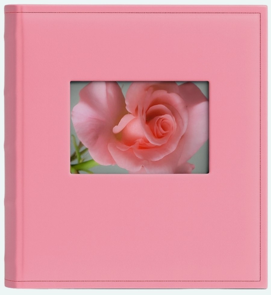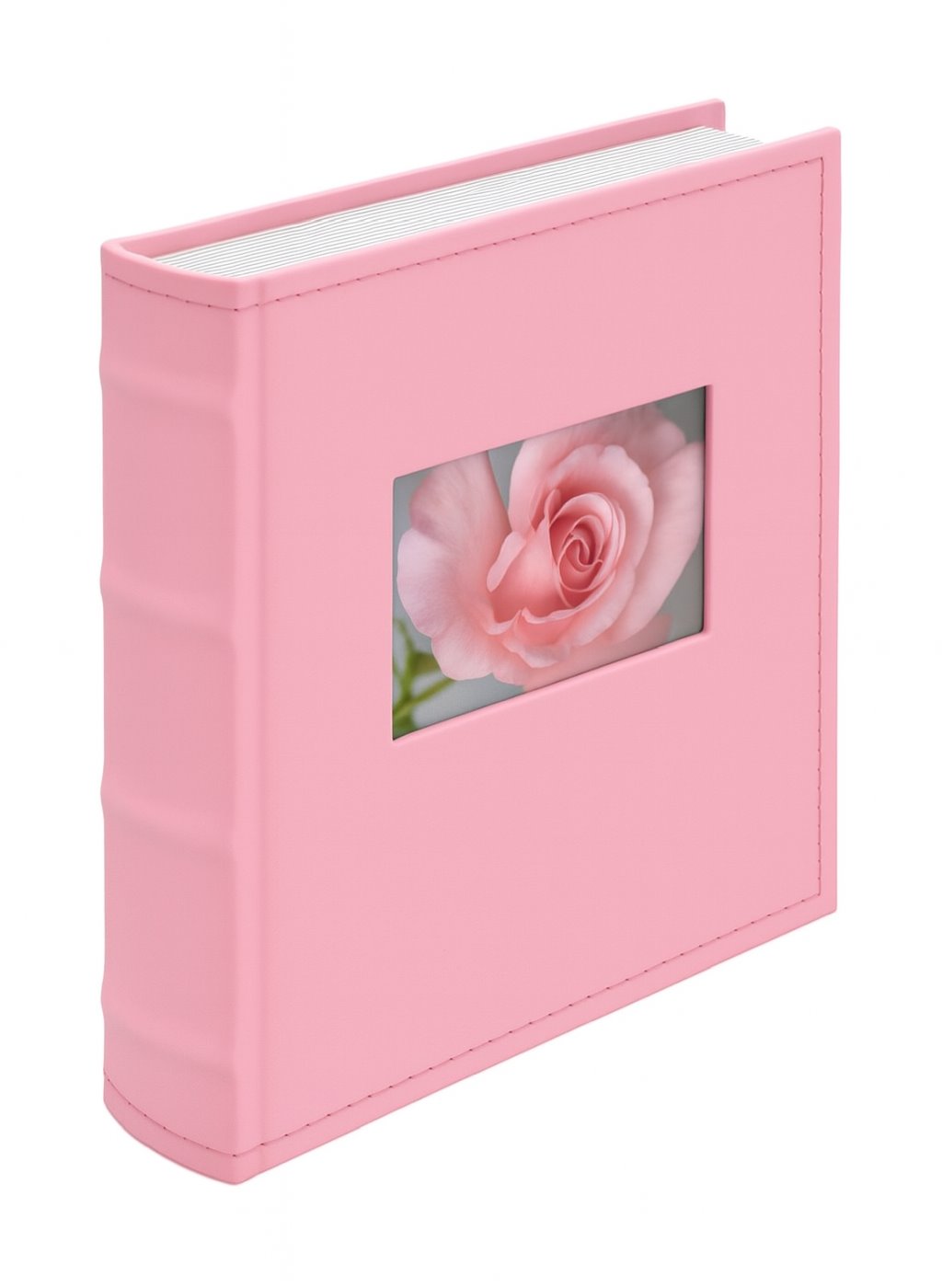 Okładka albumu została wykonana z wysokiej jakości gładkiej eko-skóry w intensywnym, różowym kolorze. Jej minimalistyczny design przełamuje ozdobne przeszycie wzdłuż krawędzi, dodając całości elegancji. Centralnie umieszczone okienko pozwala na umieszczenie ulubionej fotografii, czyniąc każdy egzemplarz unikalnym i osobistym już od pierwszego spojrzenia.