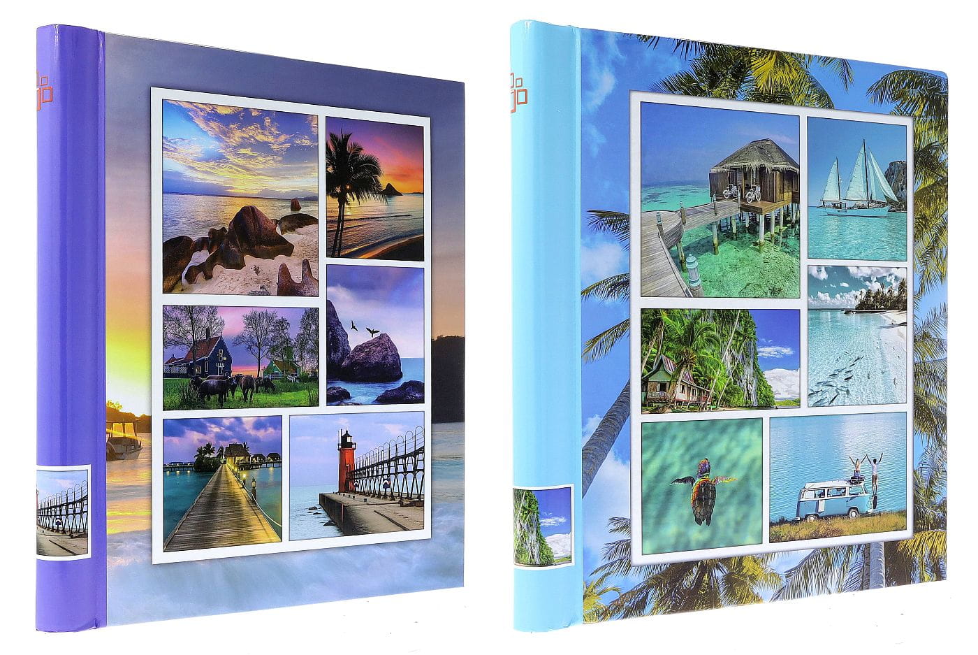 Uporządkuj swoje wspomnienia z wakacji w albumie, który sam w sobie jest zaproszeniem do podróży. Model DRS30PALM to album samoprzylepny, którego okładka, wykonana ze sztywnego papieru introligatorskiego, prezentuje barwny kolaż zdjęć z różnych zakątków świata. Produkt dostępny jest w dwóch wariantach kolorystycznych grzbietu: fioletowym z motywem zachodu słońca oraz niebieskim z motywem tropikalnym.