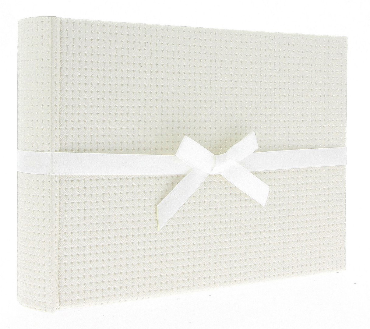 Prezentujemy album tradycyjny marki Gedeon, który wyróżnia się nie tylko solidnym wykonaniem, ale i wyjątkowym designem. Okładka w kolorze złamanej bieli została wykonana z wysokiej jakości eko-skóry o charakterystycznej, tłoczonej fakturze przypominającej wafel. Całość dopełnia elegancka, biała wstążka zawiązana na kokardkę, dodając albumowi subtelnego uroku.
