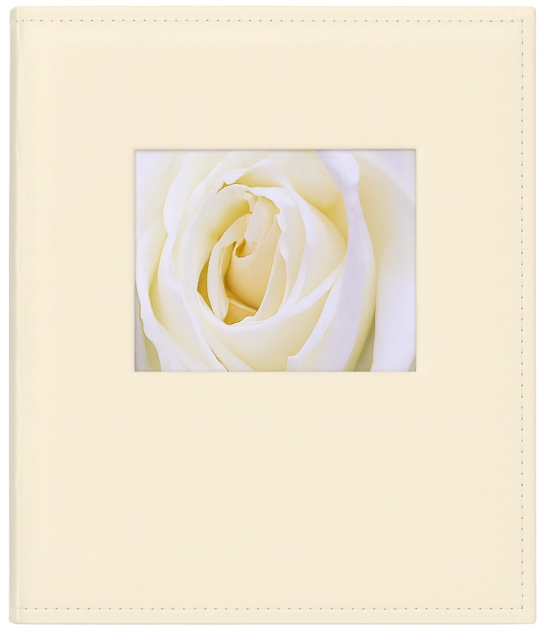 Okładka albumu została wykonana z wysokiej jakości, gładkiej eko-skóry w subtelnym, beżowym kolorze. Jej minimalistyczny charakter podkreślają staranne przeszycia wzdłuż krawędzi. Centralnym punktem jest prostokątne okienko, które pozwala na personalizację okładki poprzez umieszczenie w nim wybranej fotografii, np. portretu, zdjęcia z wakacji czy kluczowego momentu z uroczystości.