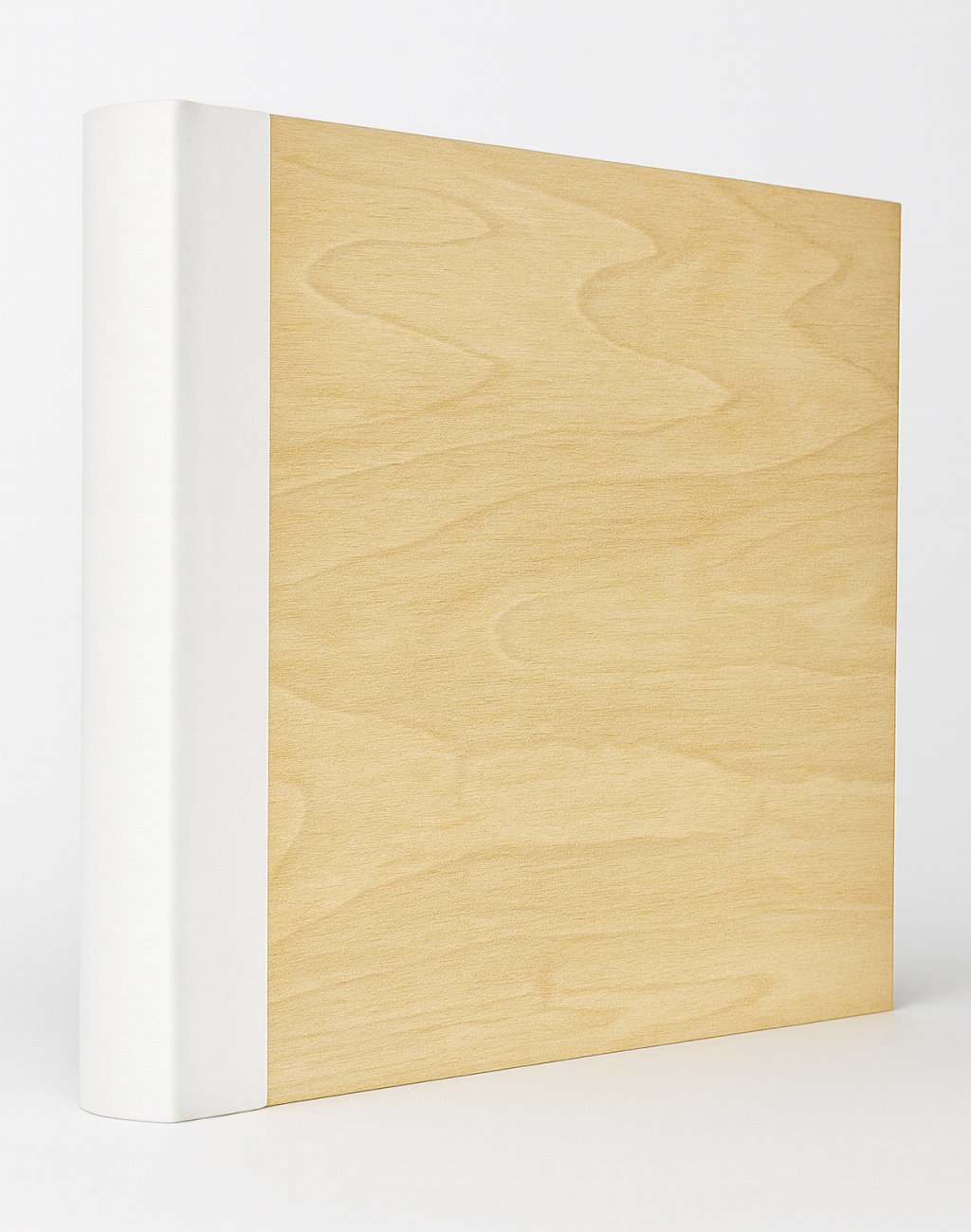 Ten album to połączenie minimalistycznego designu i funkcjonalności. Okładka z precyzyjnym wzorem słojów jasnego drewna wnosi do wnętrza ciepło i naturalny urok, idealnie komponując się z nowoczesnymi i skandynawskimi aranżacjami. Kontrastujący biały grzbiet, wykonany z gładkiej, matowej ekoskóry, nie tylko dodaje elegancji, ale również świadczy o solidności wykonania.