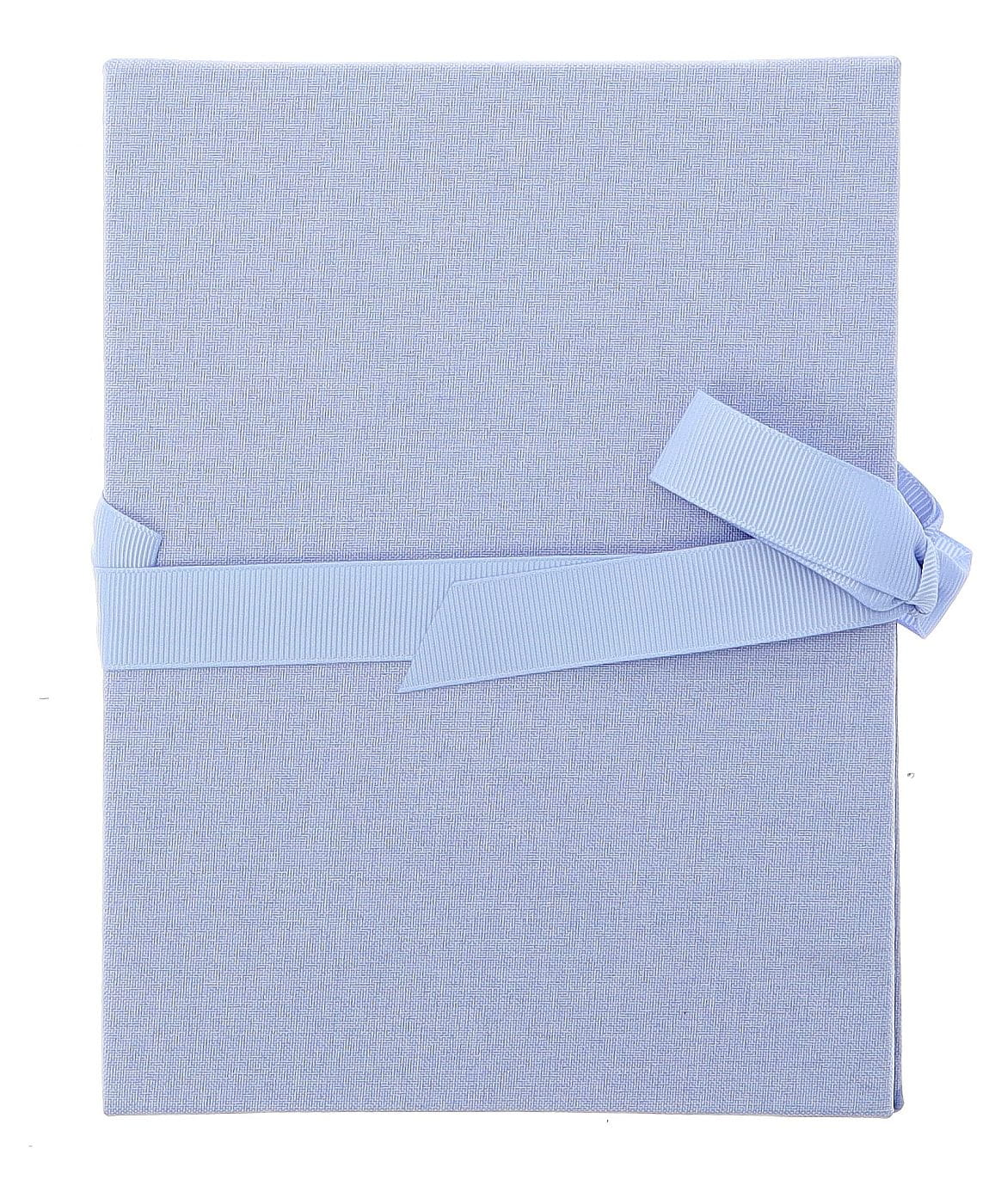 Okładka albumu została pokryta wysokiej jakości tkaniną lnianopodobną w spokojnym, jasnoniebieskim kolorze. Jej wyraźna, geometryczna faktura jest przyjemna w dotyku i nadaje całości szlachetnego charakteru. Album zamykany jest na szeroką, rypsową wstążkę w dopasowanym odcieniu, co stanowi eleganckie i praktyczne wykończenie.