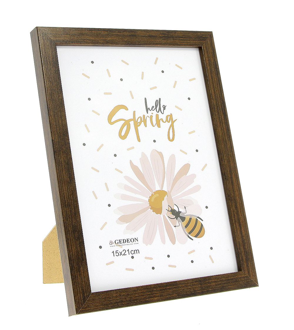 Prezentujemy ramkę na zdjęcia Gedeon FA15, która łączy w sobie ponadczasowy design z nowoczesnym wykończeniem. Jej profil został wykonany z wysokiej jakości płyty MDF i pokryty okleiną wiernie imitującą strukturę i usłojenie ciemnego, bejcowanego drewna. Głęboki, brązowy kolor dodaje elegancji i sprawia, że ramka pasuje do większości wnętrz, od tradycyjnych po nowoczesne.