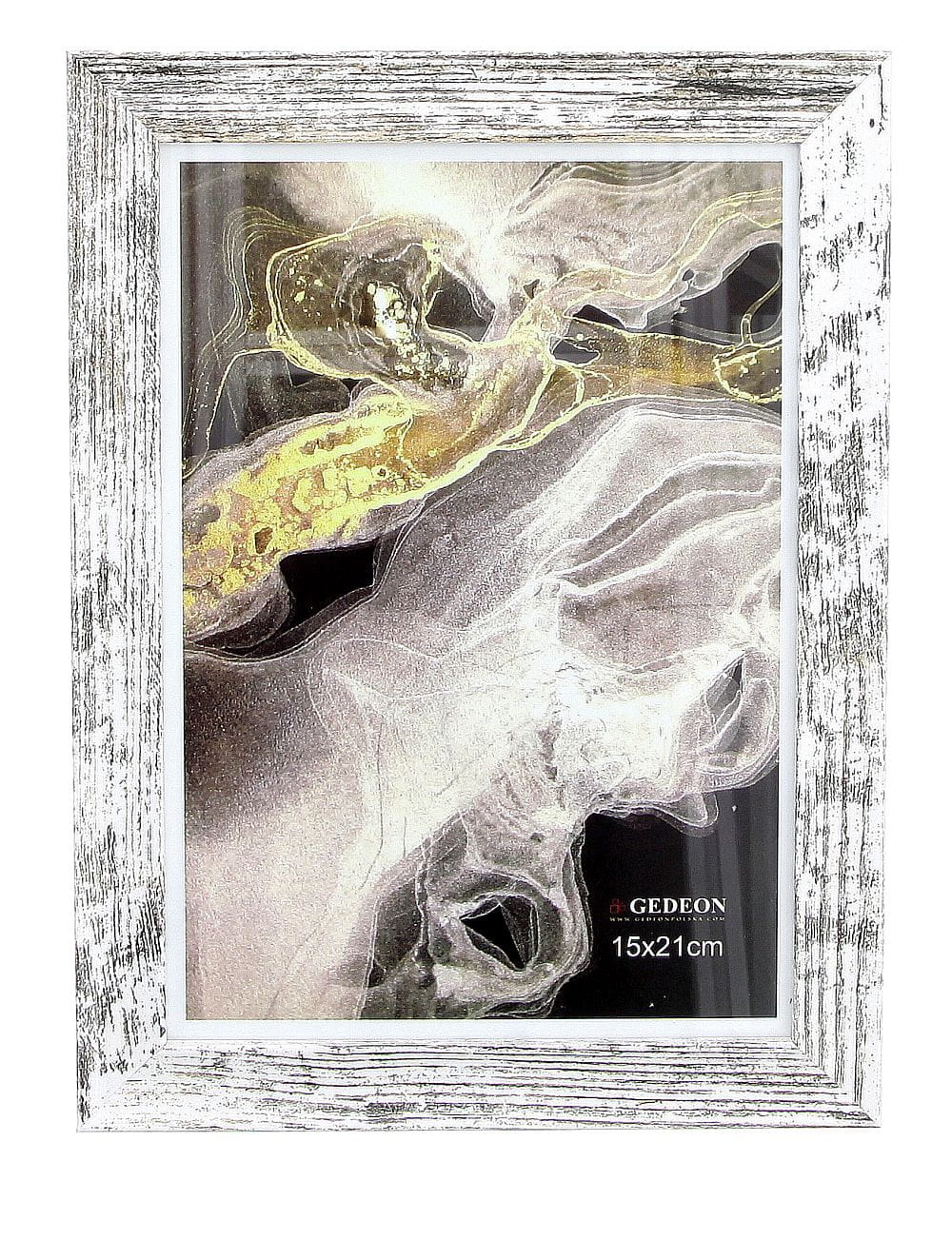 Ramka została wykonana z drewna, a jej powierzchnia została poddana celowemu procesowi postarzania. Biała farba z charakterystycznymi przetarciami odsłania ciemniejsze słoje drewna, nadając każdej sztuce niepowtarzalny wygląd. Prosty, a zarazem wyrazisty profil ramki doskonale podkreśli zawartość, nie przytłaczając jej.