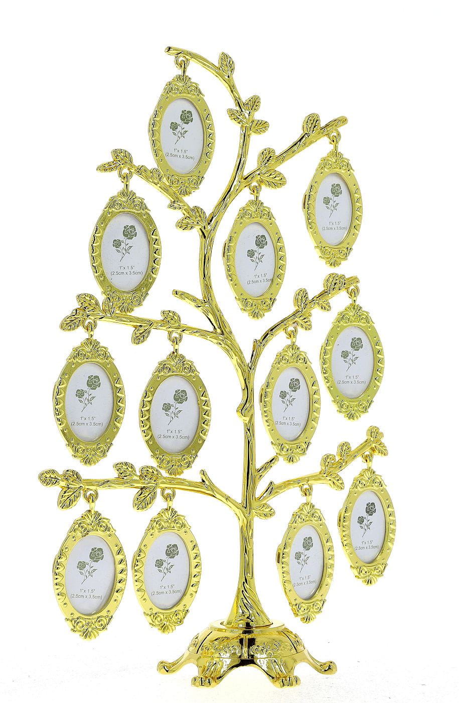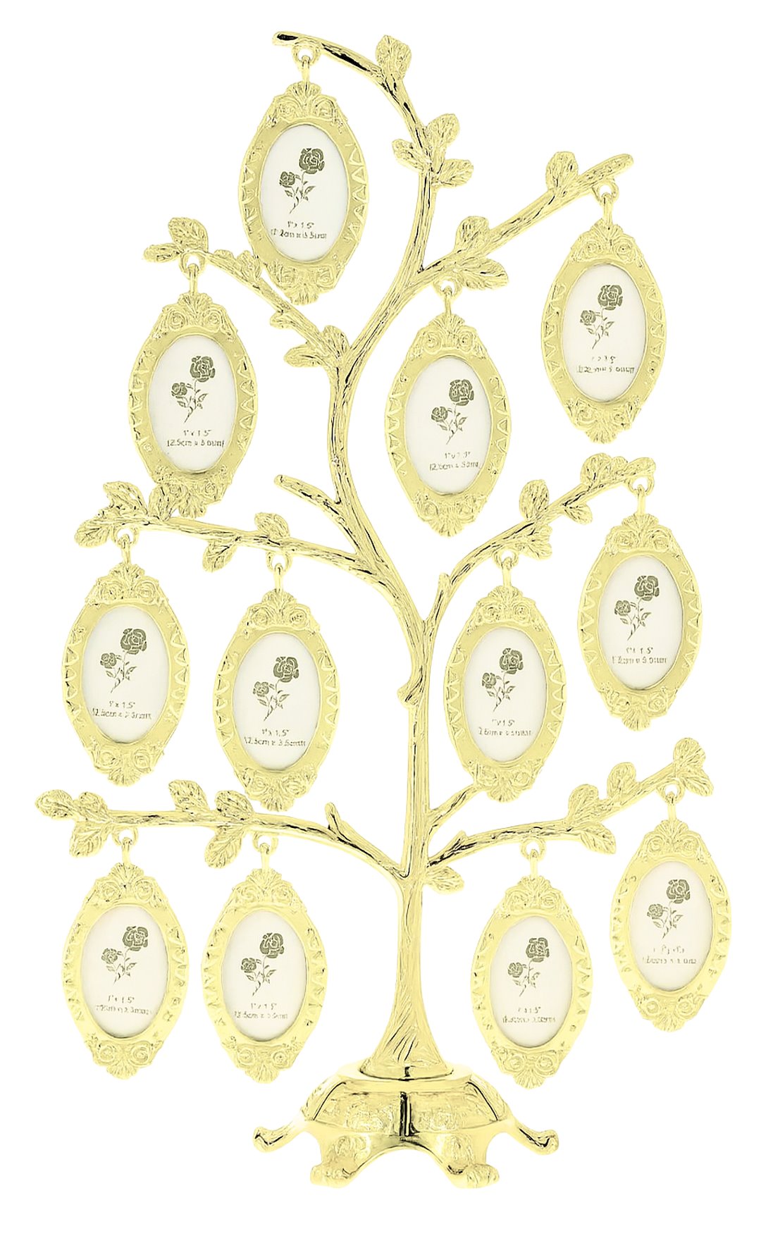 Konstrukcja ramki imituje rozłożyste drzewo z gałęziami i drobnymi listkami, co nadaje jej organicznego i eleganckiego charakteru. Stabilność zapewnia szeroka, bogato zdobiona podstawa. Na gałęziach zawieszono 12 miniaturowych, owalnych ramek, każda z ozdobnym, barokowym tłoczeniem. Każda ramka przeznaczona jest na zdjęcie o formacie 2.5 cm x 3.8 cm.