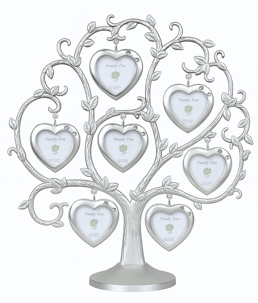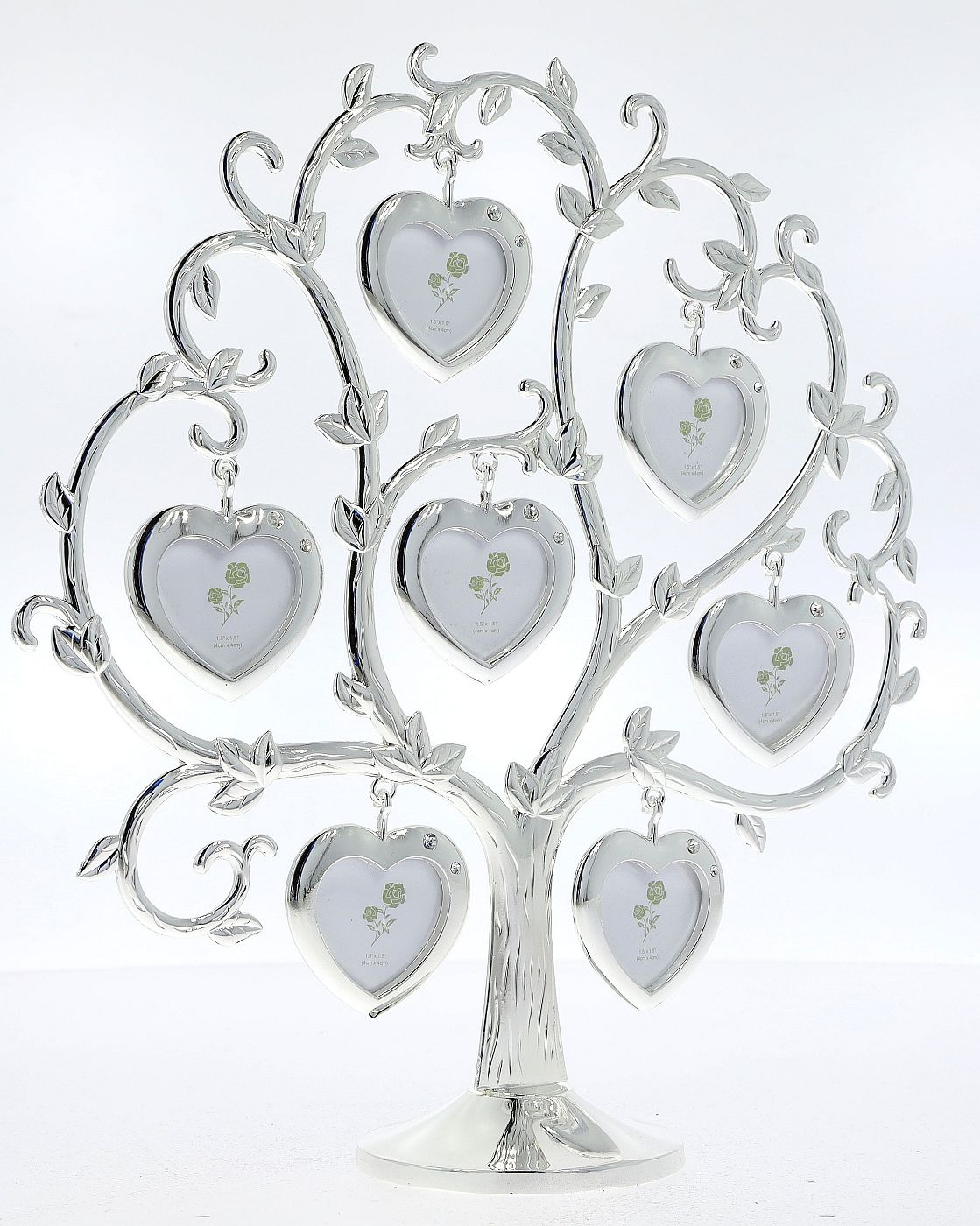 Na gałęziach zawieszono osiem niezależnych ramek w kształcie serc. Każda z nich przeznaczona jest na jedno zdjęcie i została ozdobiona subtelną, połyskującą cyrkonią, dodającą całości elegancji. Zdjęcia montuje się w prosty sposób, odchylając tylną ściankę każdej z małych ramek.
