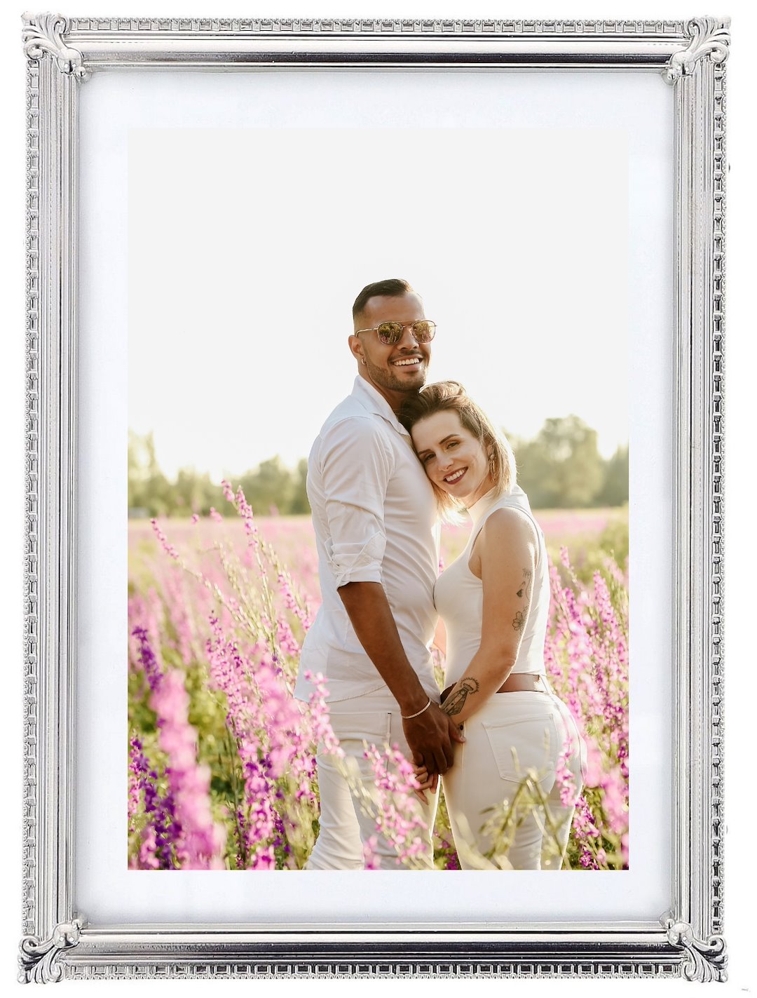 • Wewnętrzny rant: Delikatny, perłowy wzór, który subtelnie otacza fotografię.