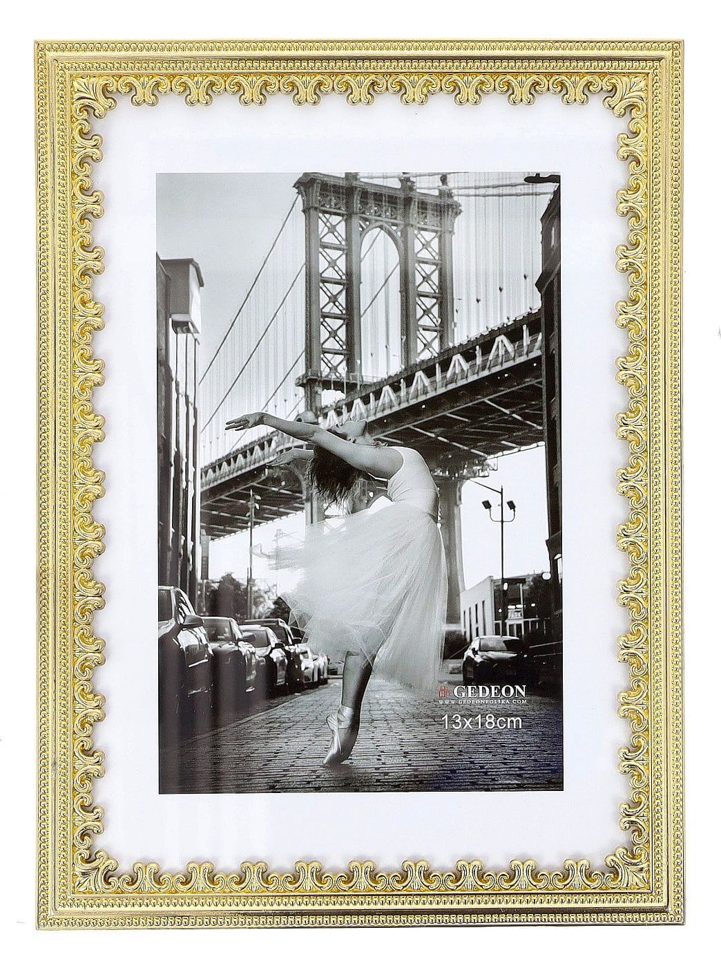 Prezentujemy metalową ramkę na zdjęcia Gedeon, która łączy w sobie klasyczną elegancję z bogactwem detali w stylu barokowym. Jej złoty kolor z efektem postarzania nadaje jej szlachetnego wyglądu, a misternie wykonane tłoczenia i ornamenty sprawiają, że jest nie tylko oprawą dla zdjęcia, ale samodzielną dekoracją.