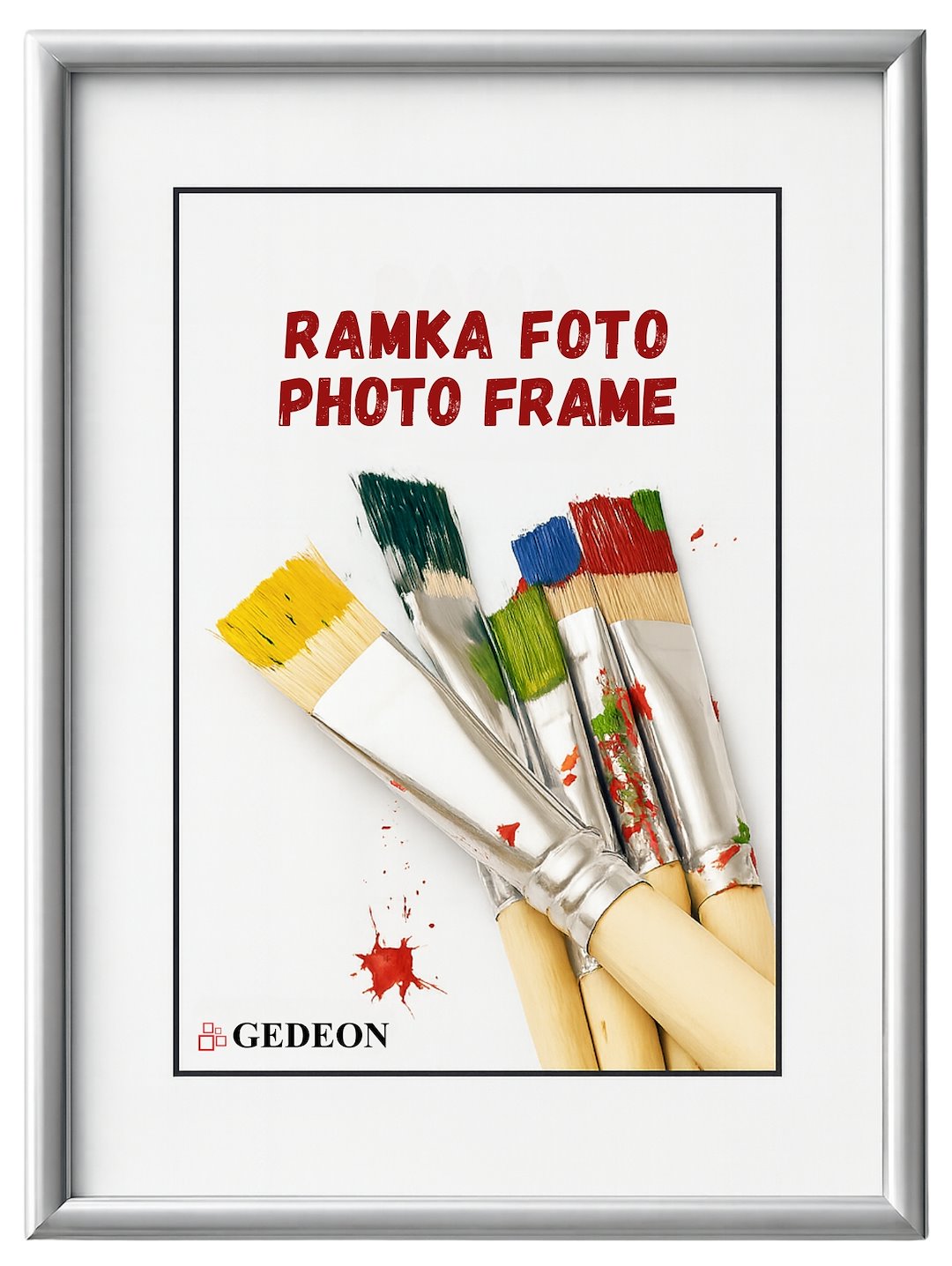 Ramka została wykonana z wysokiej jakości tworzywa sztucznego o matowym, szczotkowanym wykończeniu w kolorze srebra. Delikatnie zaokrąglony profil listwy o szerokości ok. 1 cm nadaje jej lekkości i elegancji. Zamiast tradycyjnego szkła zastosowano bezpieczne i lekkie plexi, które jest odporne na stłuczenia. Pamiętaj, aby przed umieszczeniem zdjęcia zdjąć folię ochronną z obu stron plexi.